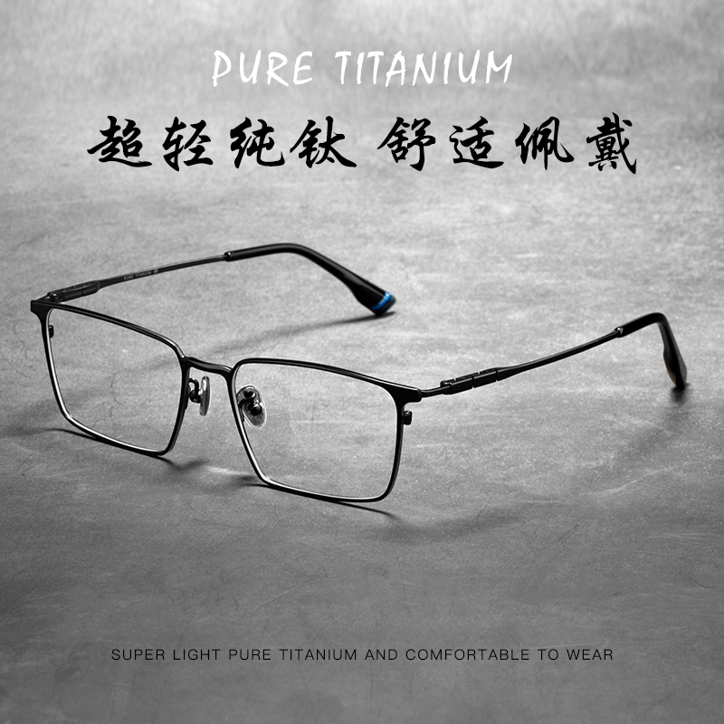Pure titanium glasses frame men's big face ultra-light business men's glasses frame full frame half frame square frame myopia eye frame frame