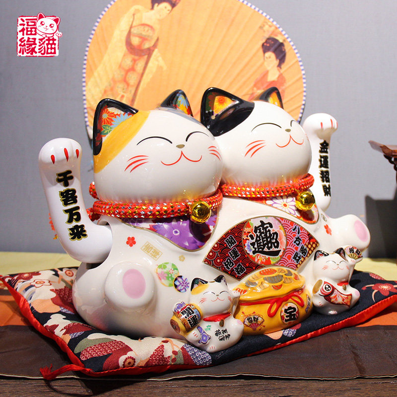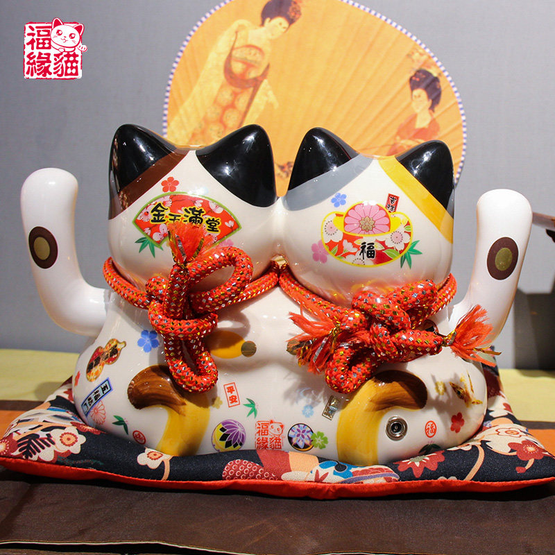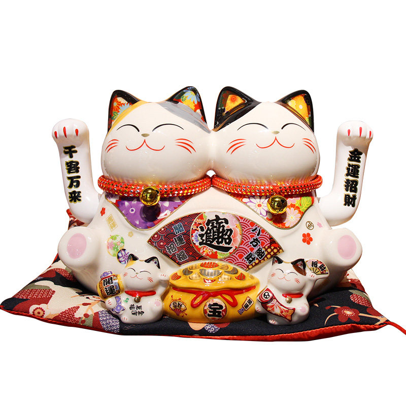 Fortune lucky cat ornaments Automatic beckoning shop cashier jewelry Double shake hand Fortune Cat company opening gift