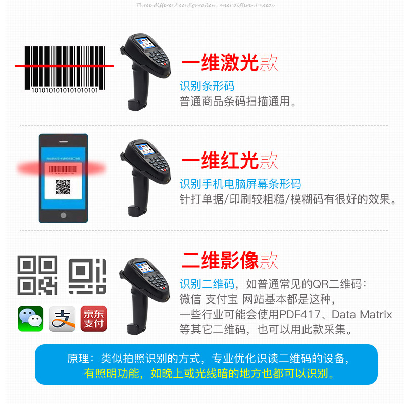 Standard:Wireless one-dimensional laser option 1:Wireless one-dimensional red light option 2:Wireless two-dimensional image