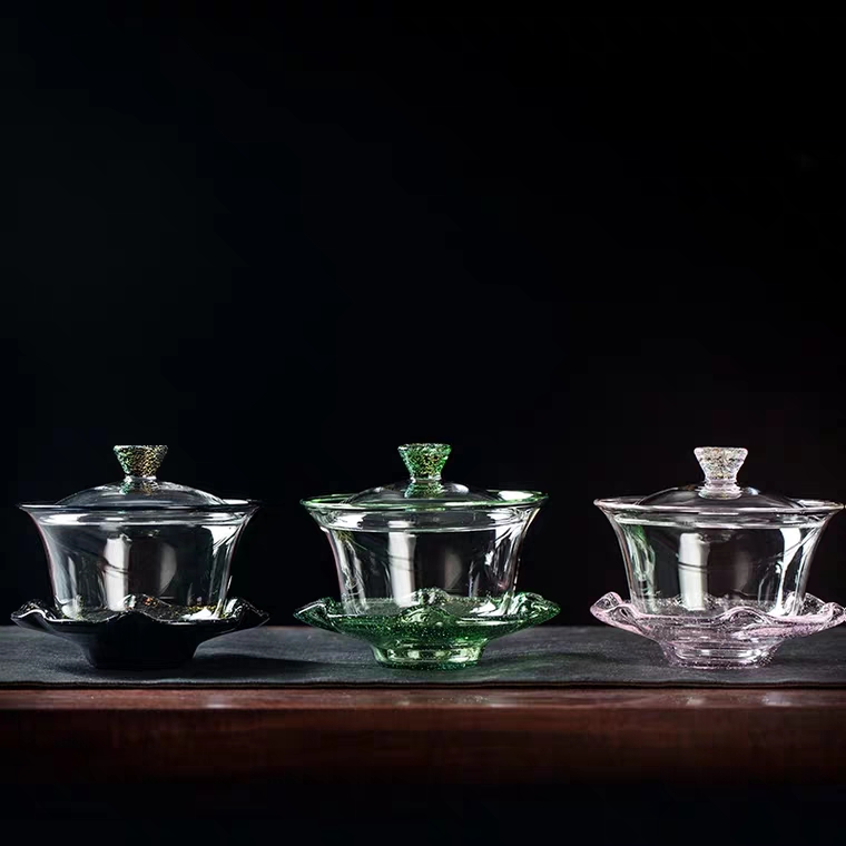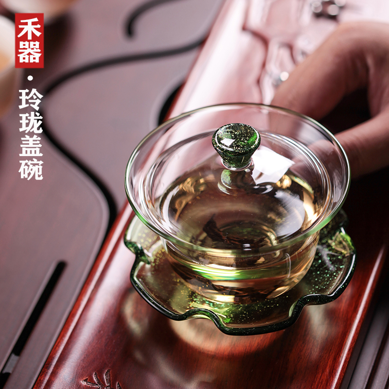 Heware glass lid bowl Linglong lid bowl and instrument Jingcai series lid bowl thickened heat-resistant and anti-scalding three before liding bowl kung fu