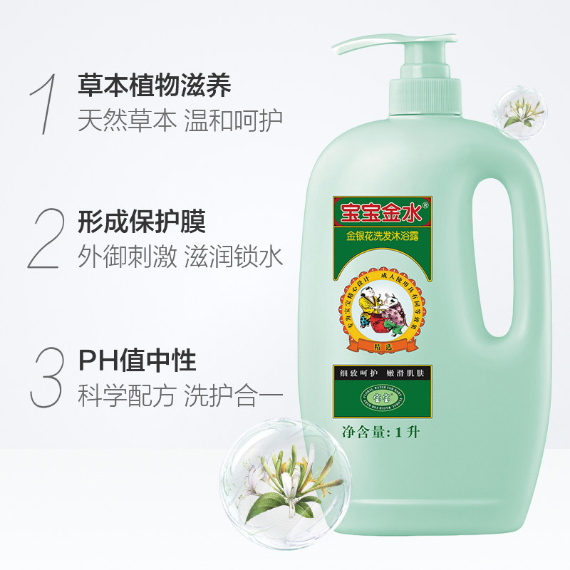 Baby golden water 1000ml honeysuckle shampoo and shower gel two-in-one baby children's shampoo and shower gel refreshing