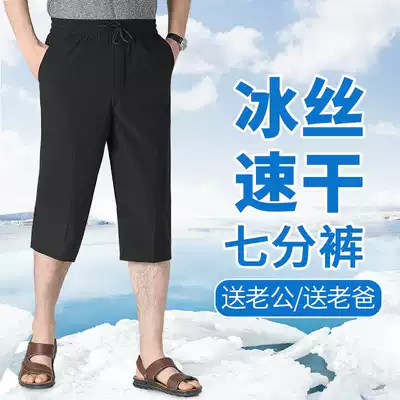 Dad shorts men wear ice silk quick-drying middle-aged and elderly loose men's five-point pants casual shorts elderly three-point pants summer clothes