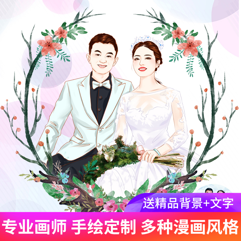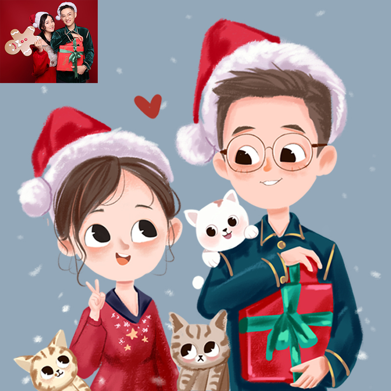 Cute Q Prints Hand-painted Cartoon Couple Avatar Photo Image Image Transfer Hand-painted Design Avatar Customize
