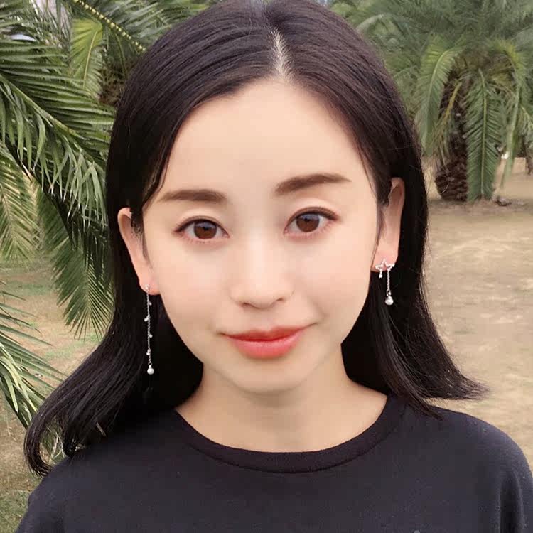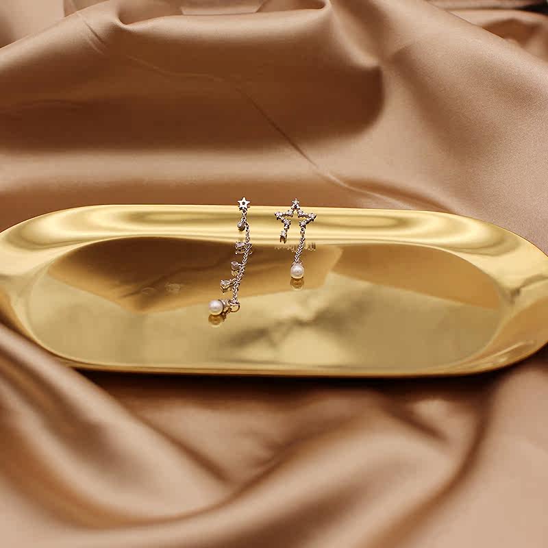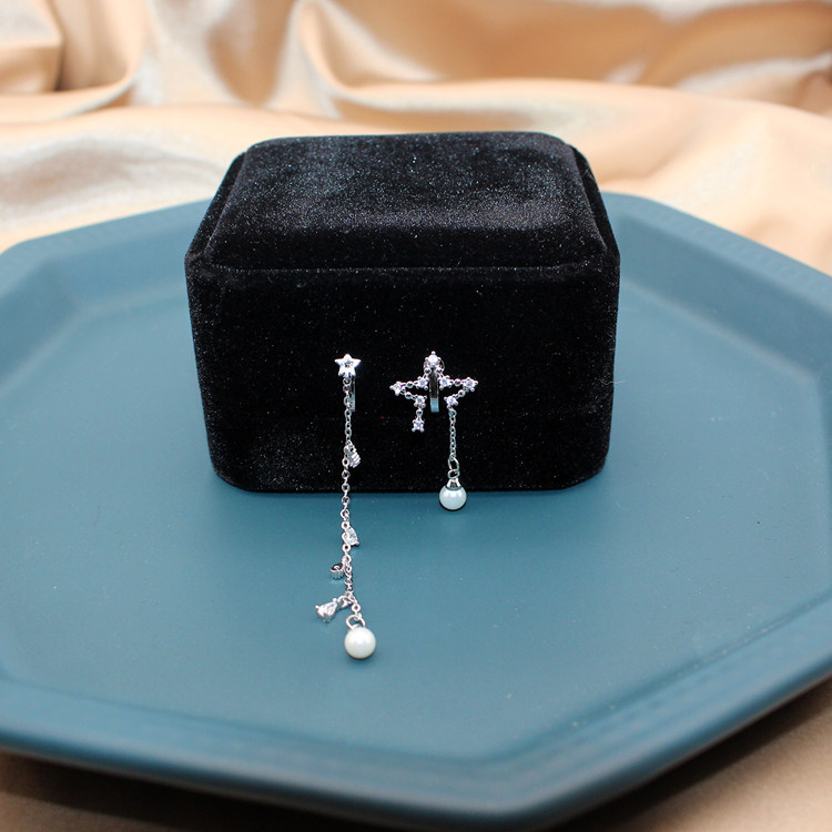 Korean asymmetrical long - edition star pearl ear loop 925 pure silver ear needle without pain - proof allergies