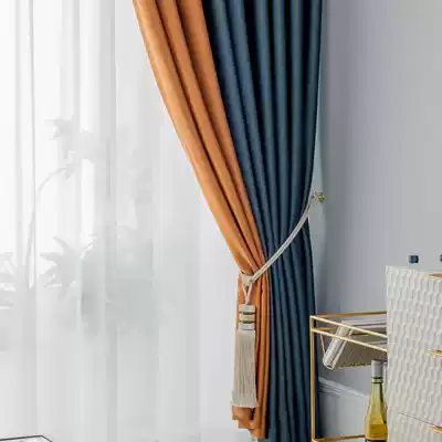 Nordic popular splicing curtains full shading simple atmospheric living room modern bedroom insulation color shade cloth custom