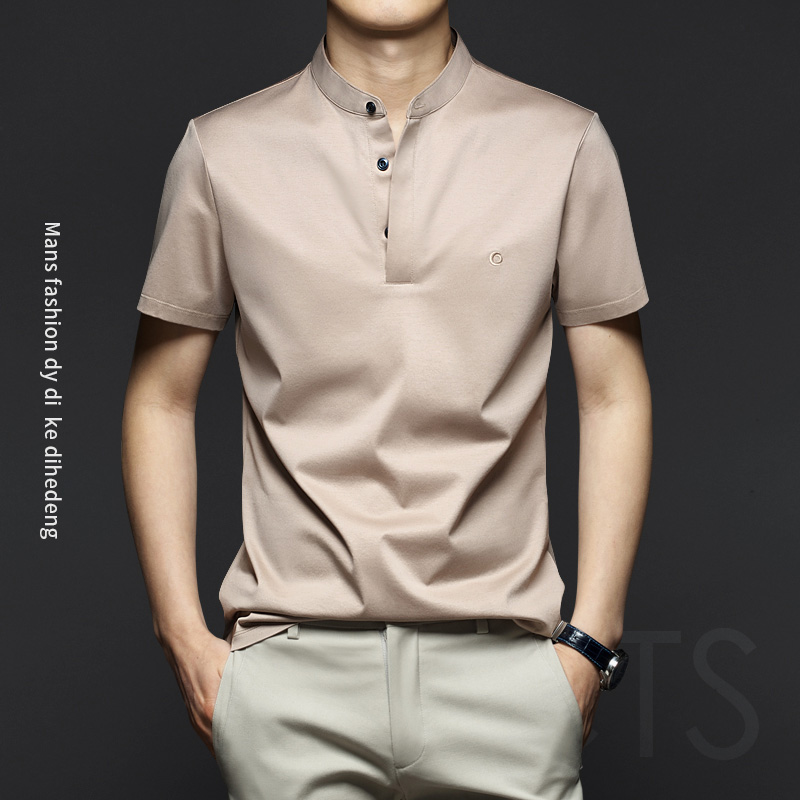 Tide brand solid color ice silk short-sleeved T-shirt men's stand-up collar trend slim cotton half-sleeved 2022 new business men's summer