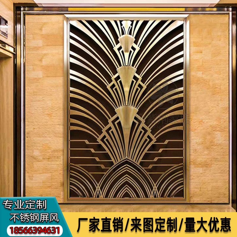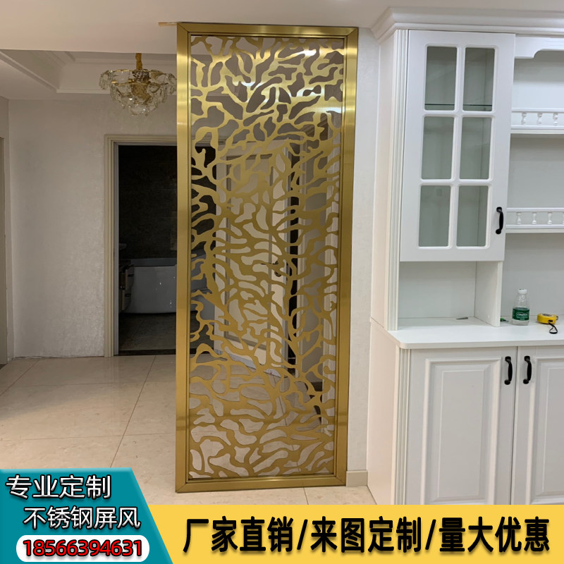 Rose gold stainless steel screen partition customized new Chinese titanium metal living room Flower hollow carved flower