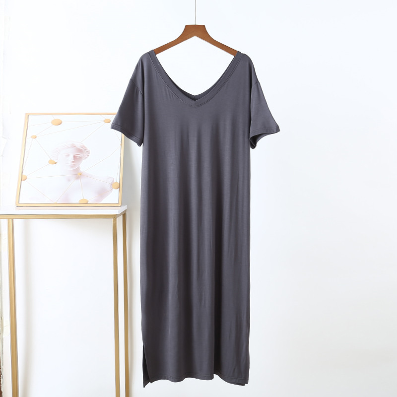 Short Sleeve Summer Sleeping Dress Woman Pure Cotton Pure Color Modell Foreign Mount Loose can be outfitted with ultra-long-style Loose Home Skirt