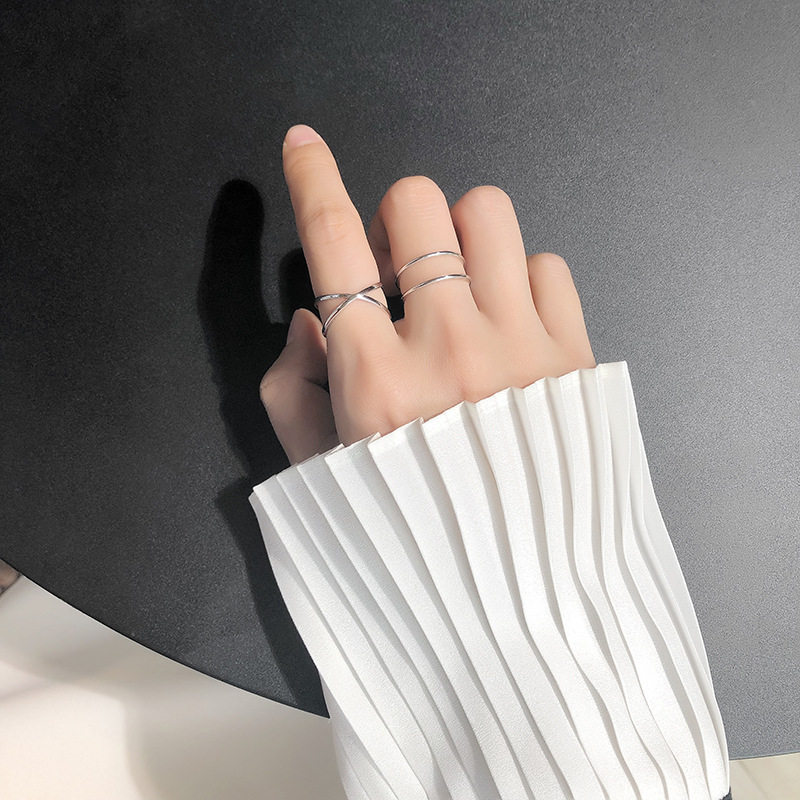 Japanese and Korean version S925 silver-plated cross-opening couple ring love simple all-match thin finger ring female index finger ring