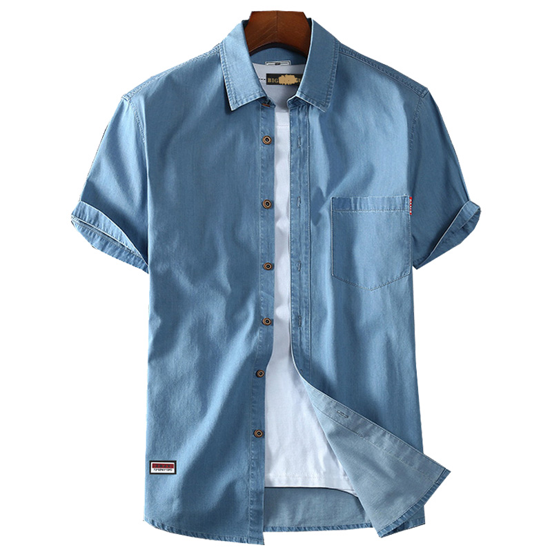Tide fat cotton denim short-sleeved shirt men's summer plus size plus size casual loose half-sleeved shirt fat guy thin