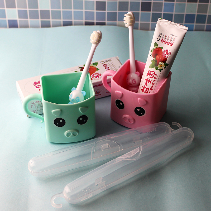 Pink and green cartoon piggy tooth cup yellow green cartoon piggy tooth cup pink yellow cartoon piggy tooth cup green piggy tooth cup blue cylinder children's million hair powder piggy tooth cup powder cylinder children's ten thousand hair yellow piggy tooth cup powder cylinder