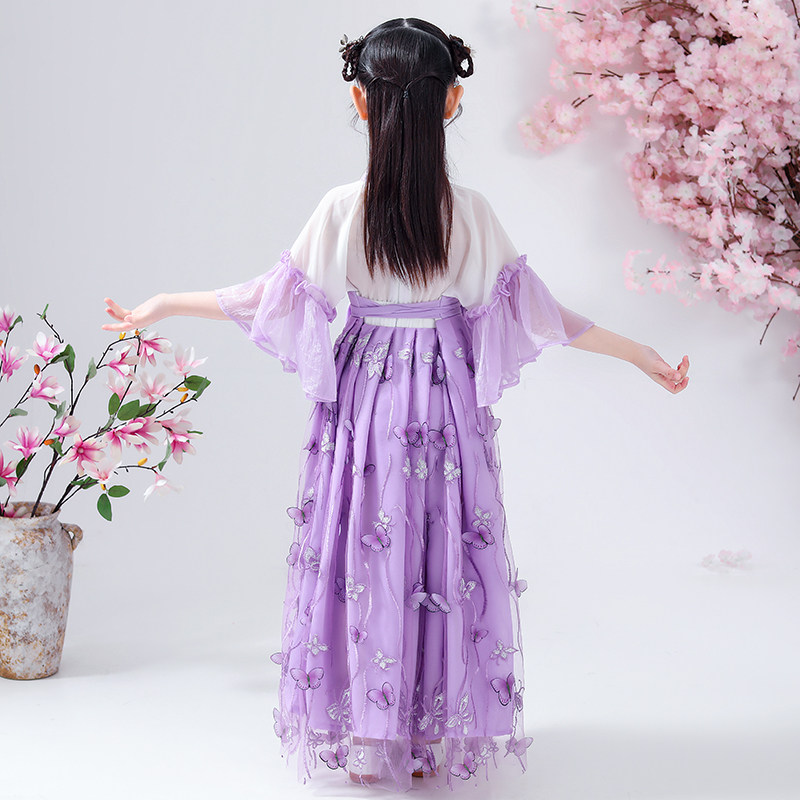 Girls Hanfu summer clothing children's dress 2021 new spring and autumn Chinese style ancient costume super fairy purple skirt girl