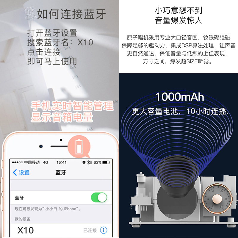 Wireless Bluetooth speaker low tone gun home phone Multimedia sound Living room Bedroom headboard built-in battery usb charging cute cartoon teenage girl birthday small gift Gramme Machine Black Glue Phonograms