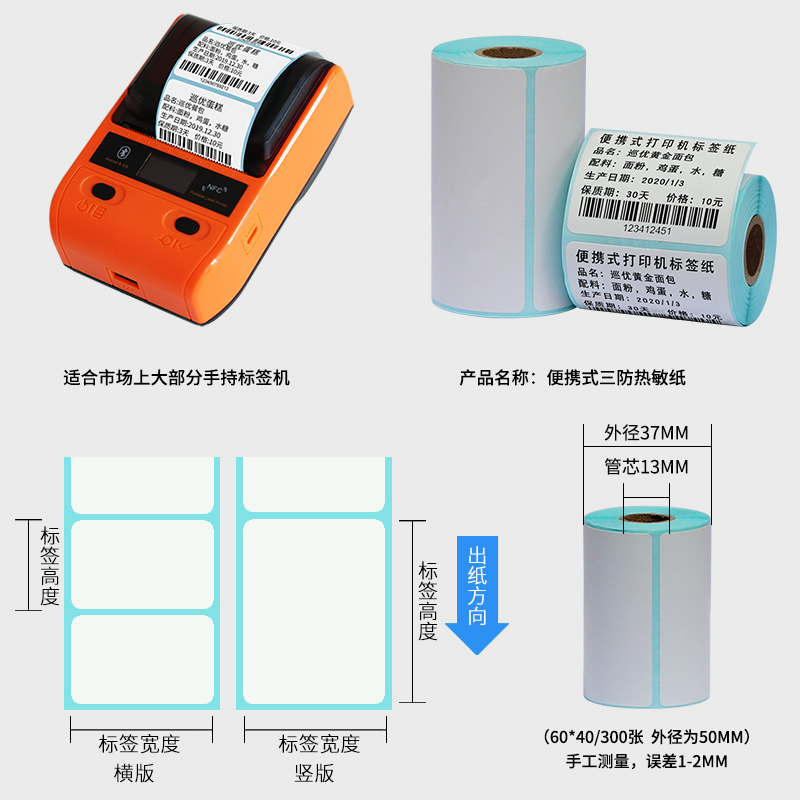 Small roll core portable rookie station label photocopying paper put into storage 60*40x30 50 hand-held bluetooth barcode printer dedicated Hanyin A300 three-proof thermal self-adhesive sticker fine B11