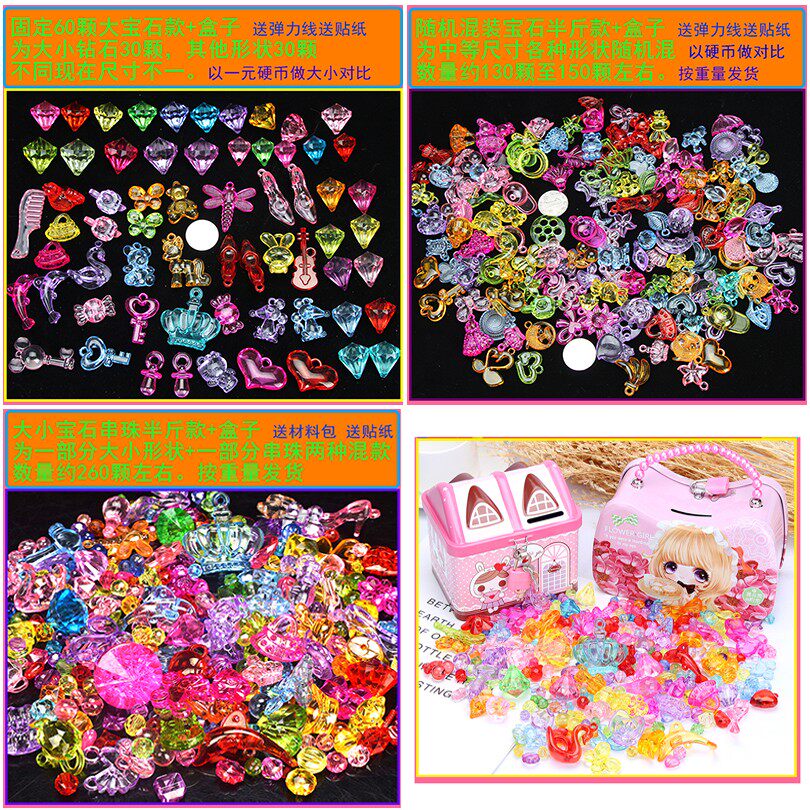 Children's gem crystal colourful gemstone diamond imitation crystal piercing crystal diy hand-string beads puzzle toy