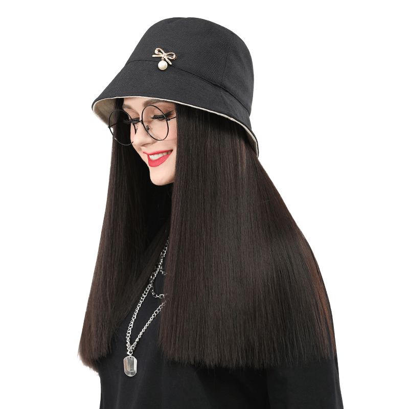 Wig hat one fashion autumn and winter wig female hair fisherman hat with wig simulation natural long straight hair