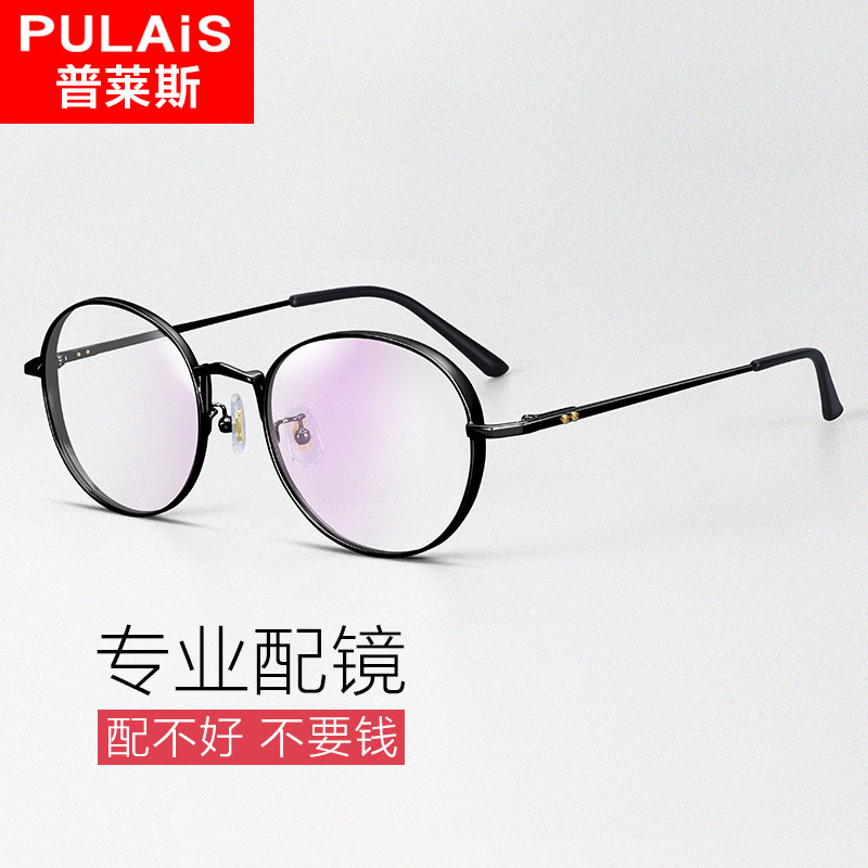 Plyce pure titanium myopia glasses female flat light retro art round glasses with nearsightedness eye frames male 795