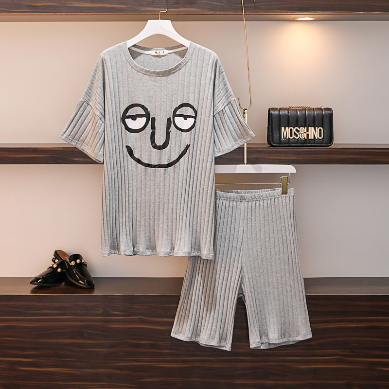 Pajamas women's summer short-sleeved cotton two-piece suit plus size fat MM200 catties cartoon home clothes pregnant women plus fertilizer