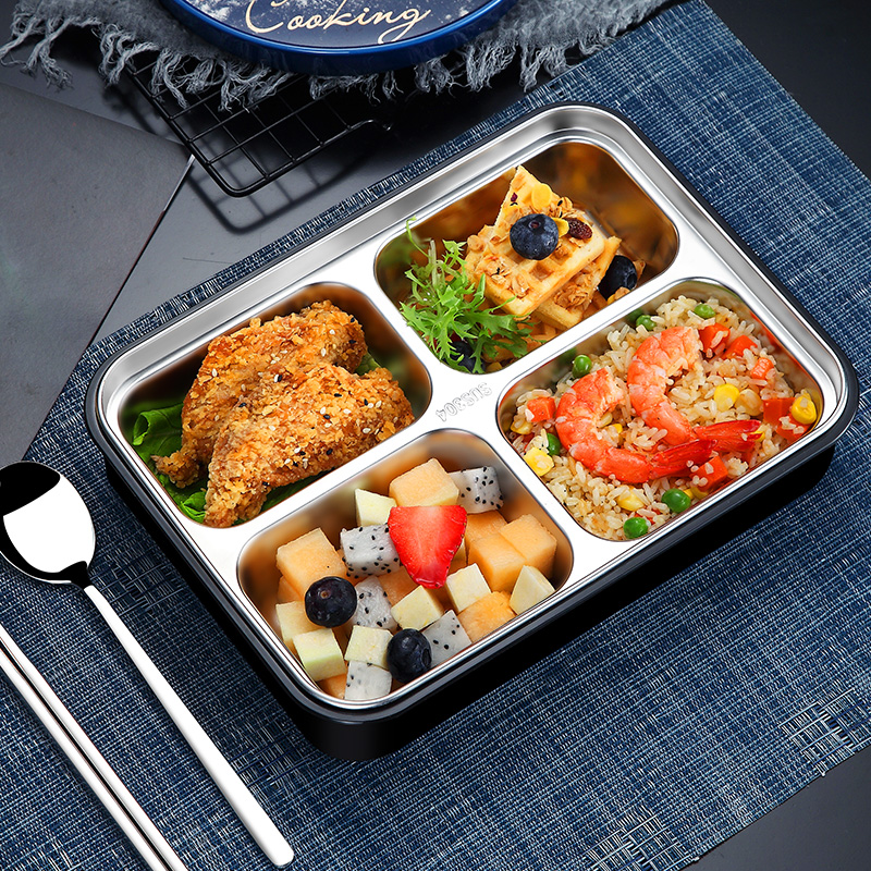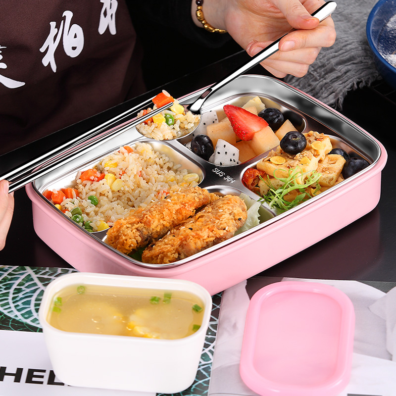 (Black) medium 4 squares tableware delivery soup grid (suitable for small meals) (powder) medium 4 squares tableware delivery cabinet insulation bag (suitable for small meals) (blue) medium 4 grid