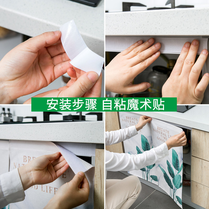 Kitchen integral cabinet door curtain sheltering curtain open storage cabinet anti-dust cloth adhesive free of punch and mildew cotton numb cover cloth