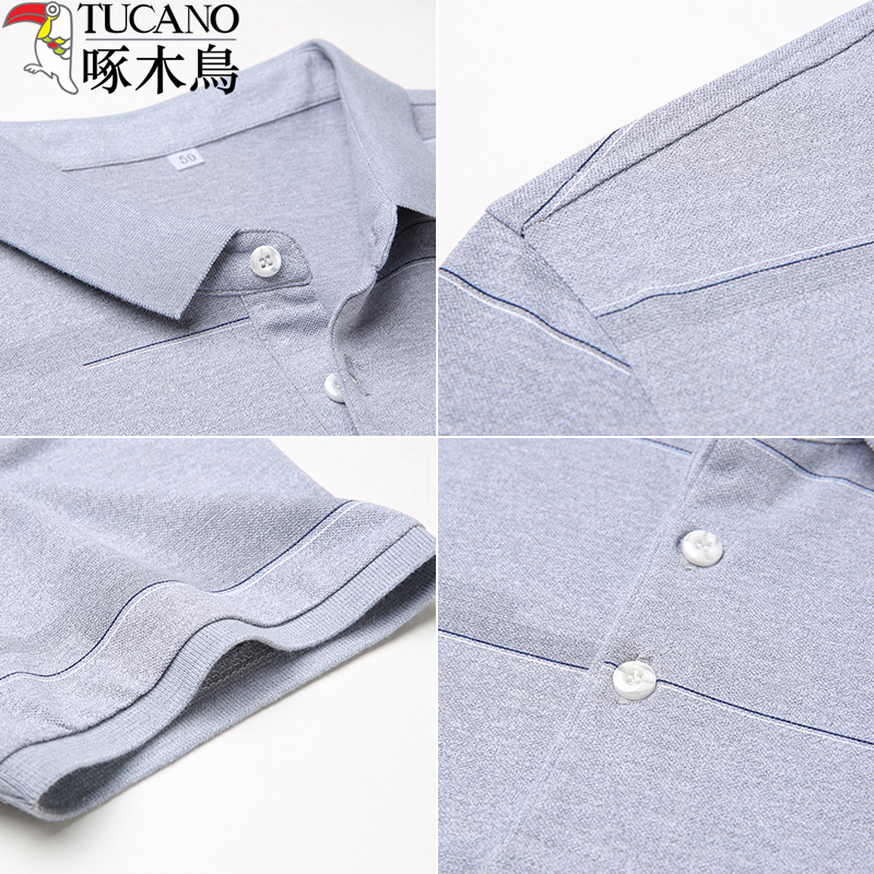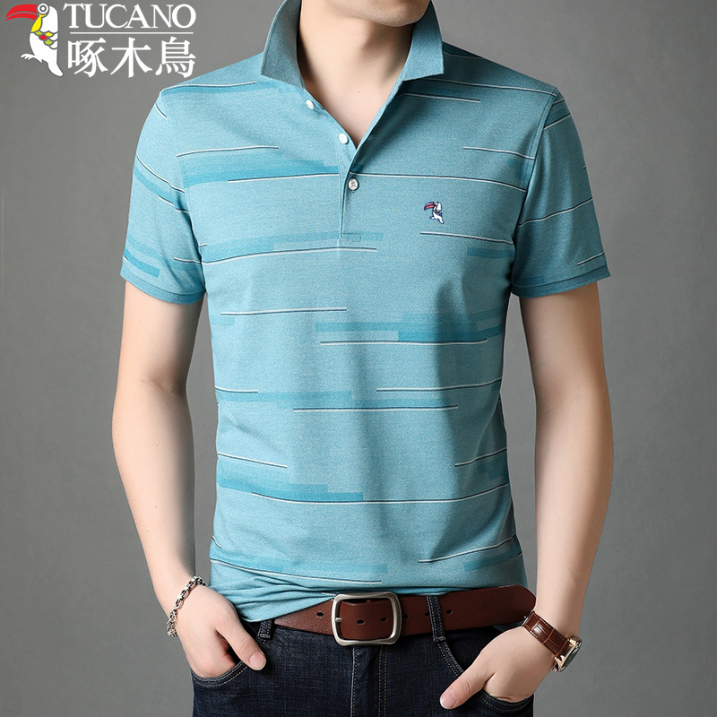 Woodpecker short-sleeved t-shirt men's new men's young and middle-aged solid color lapel casual top loose polo shirt men's tide
