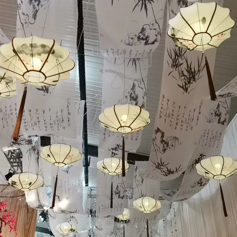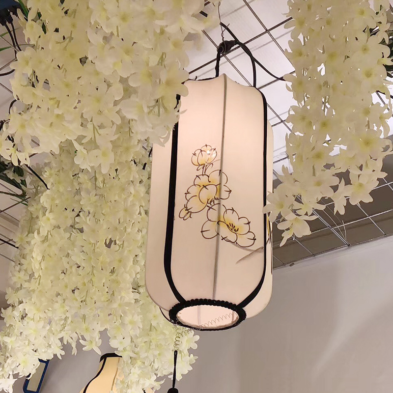 New Chinese style fabric wedding lantern hanging Chinese style aerial suspended ceiling decoration creative hand-painted wedding fabric chandelier