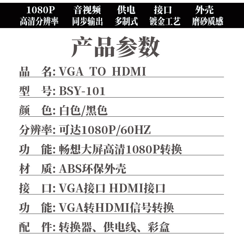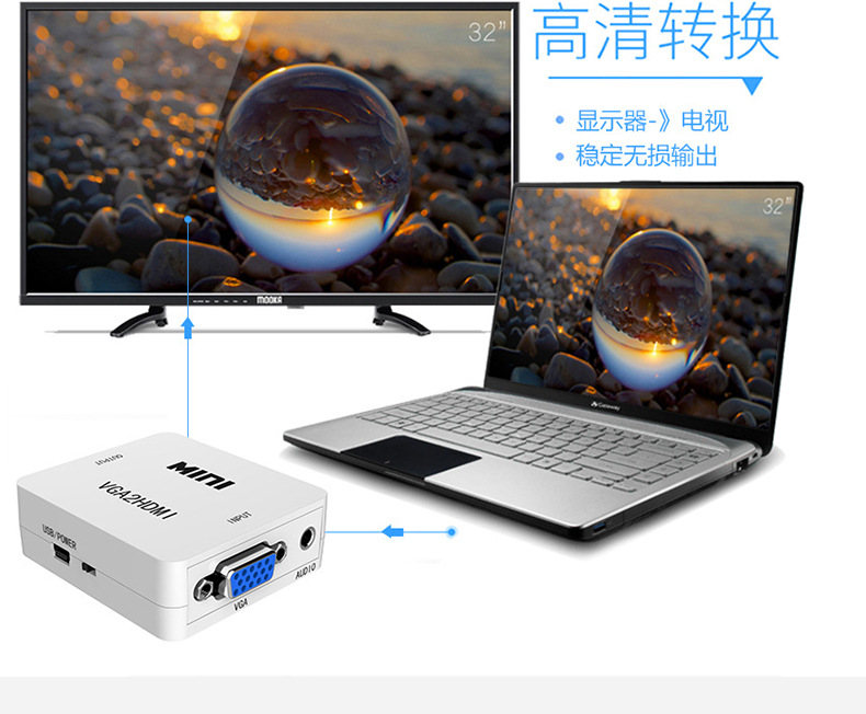 VGA TO HDMI Converter mini VGA to HDMI Converter supports 1080P HD VGA to HDMI