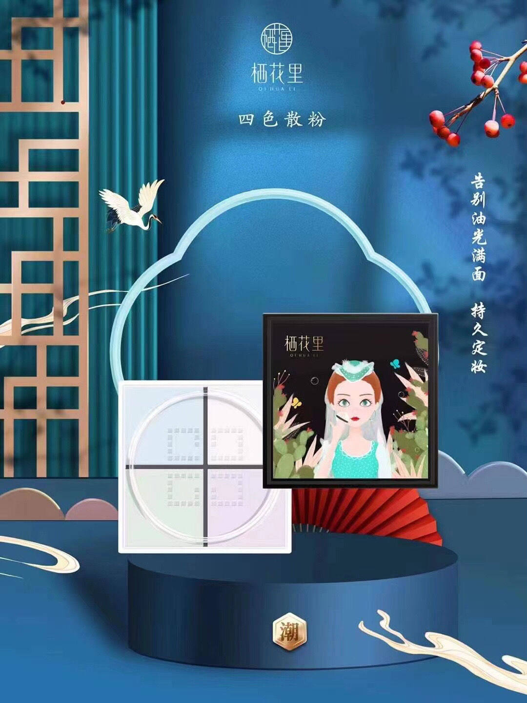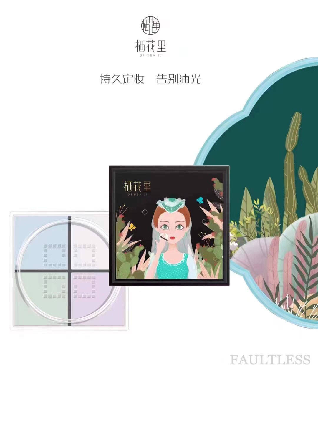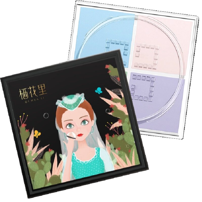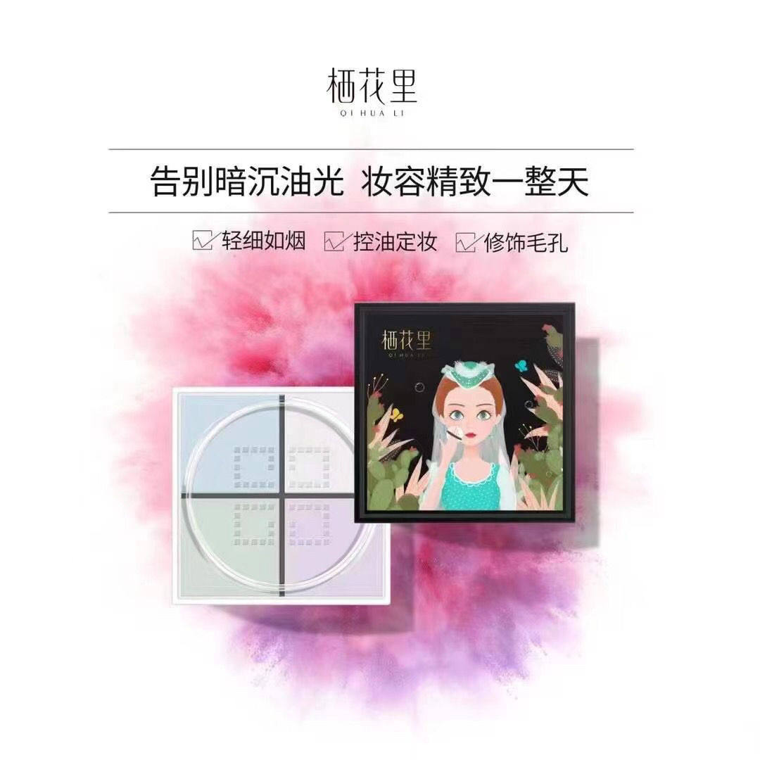 Spring vegetarian small Fair Light Powder Persistent Makeup Powder Lasting Makeup Powder Four Color Light Color Light Penetration Light Permeable Fine Shelter Flowers