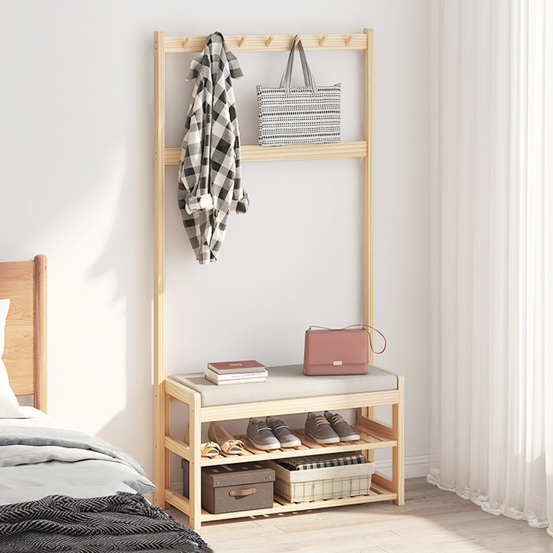 Solid wood clothes hanger floor bedroom hanging clothes hanger door shelve clothes rack clothes rack shoe rack integrated in Xuanguan Easy clothes rack