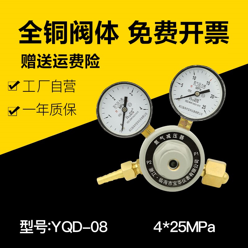 Platinum only nitrogen cylinder pressure reducer YQD-08 all copper pressure regulating pressure reducing valve 4*25mpa pressure gauge laser cutting