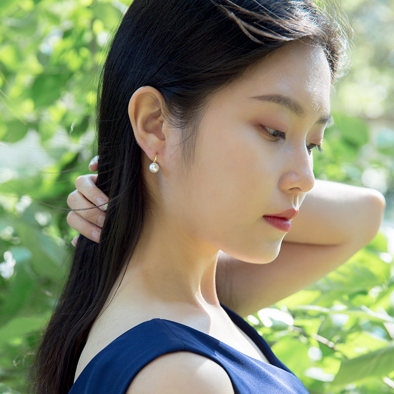 (Hivaney) Japan AKOYA pearl earnail high heel shoe classic with seawater pearl 18K gold