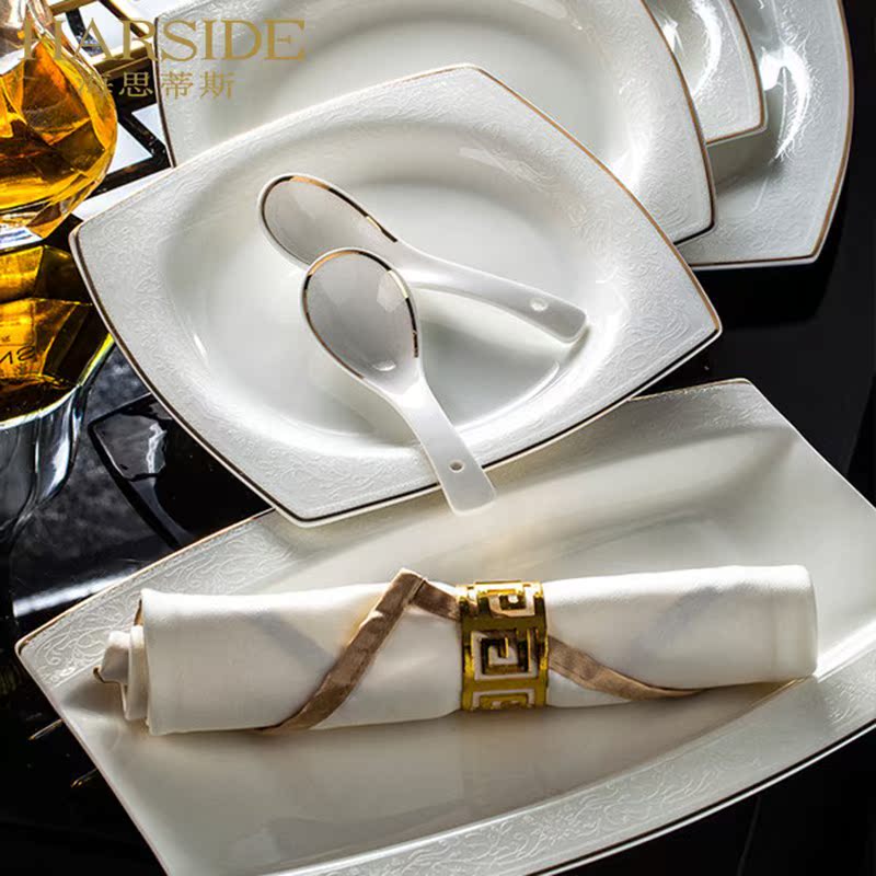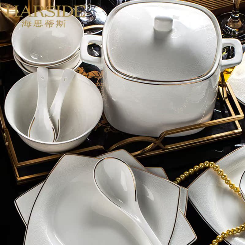 HARSIDE Ceramic Bowl Set European Style Simple Gold Edge Bowl Set High-grade Bone China Tableware Set