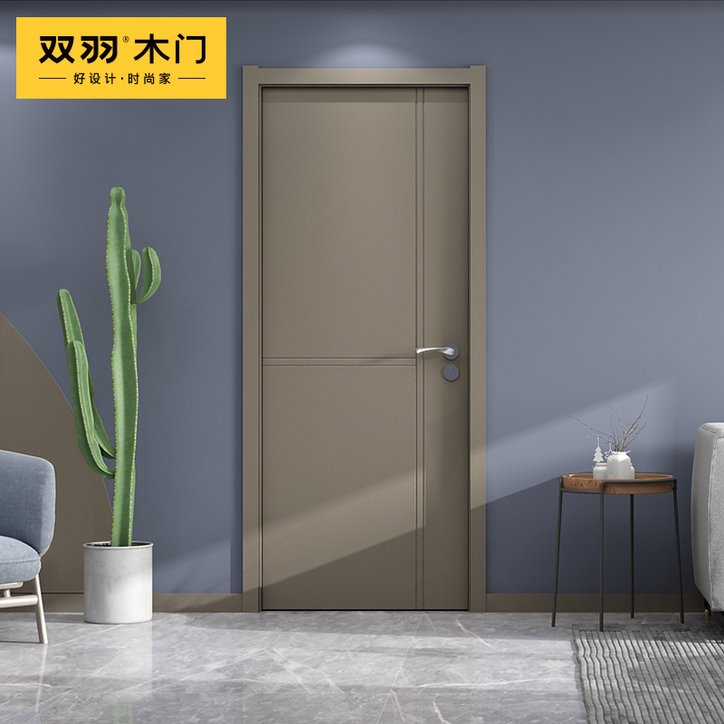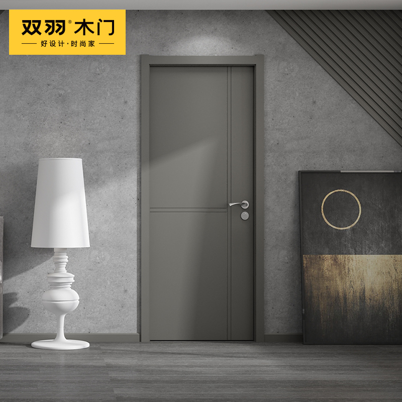 Double feather wooden door modern simple interior door minimalist door paint bedroom door solid wood composite set door PF023