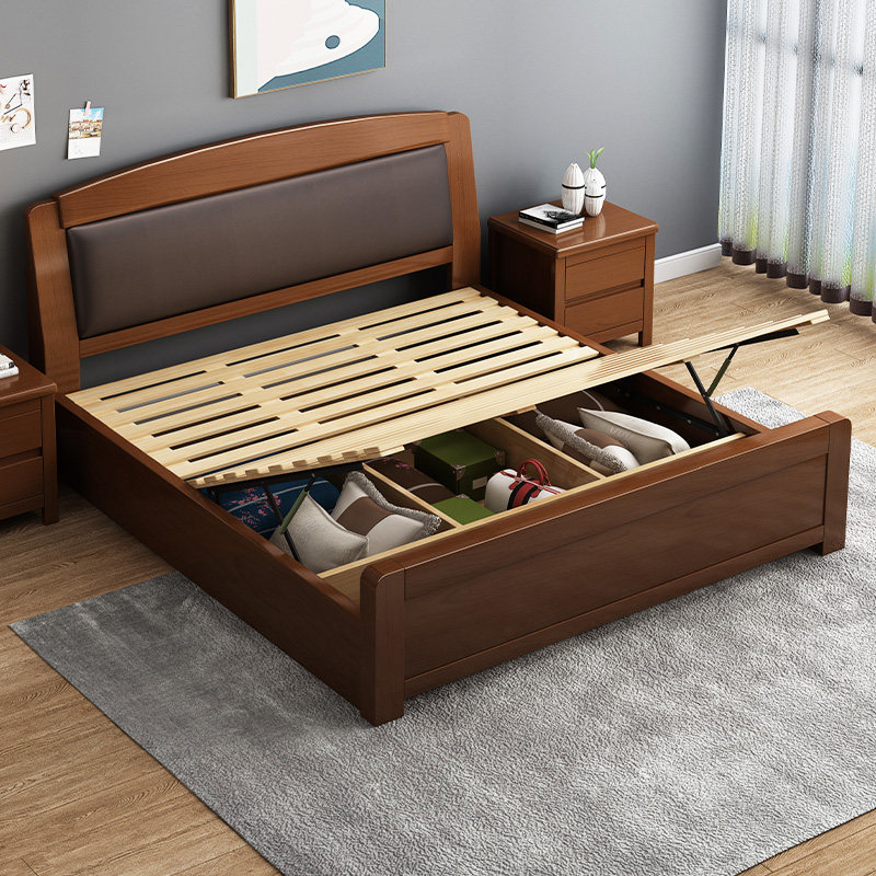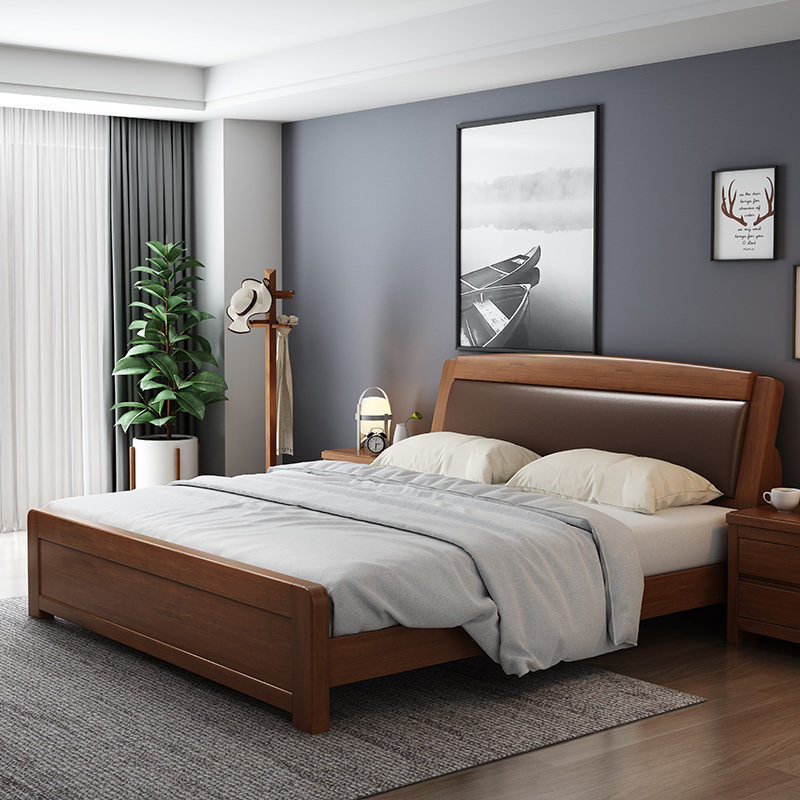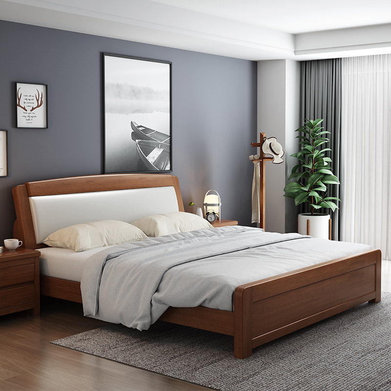 Male bear furniture Chinese modern minimalist solid wood bed 1 5 meters single 1 8 meters double master bedroom economical canopy bed