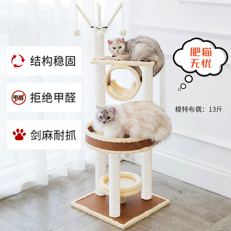 Sisal cat climbing frame Cat nest Cat tree One-piece sky pillar Solid wood cat platform Cat claw column Cat nest Small cat shelf