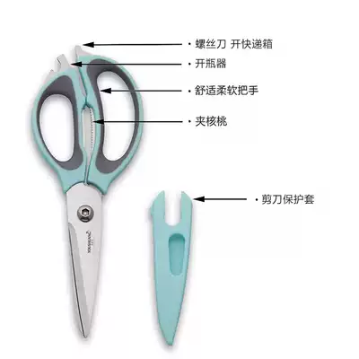 Kitchen scissors multi-function food scissors Household cooking Children's non-staple food cooked food cooking scissors with scissors cover