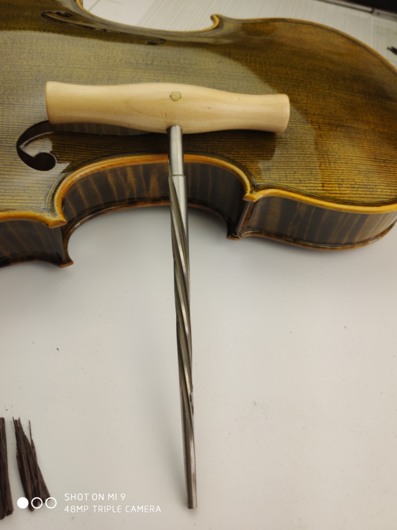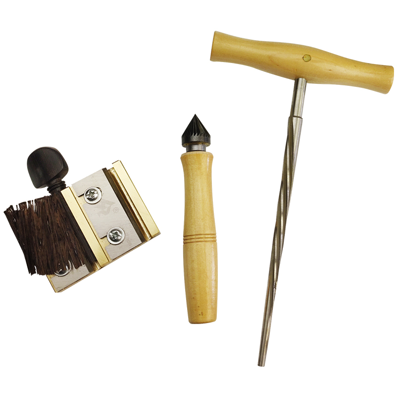 Violin making maintenance tool reamer shaft stripping reel knife shaft hole chamfer file to clean Burr