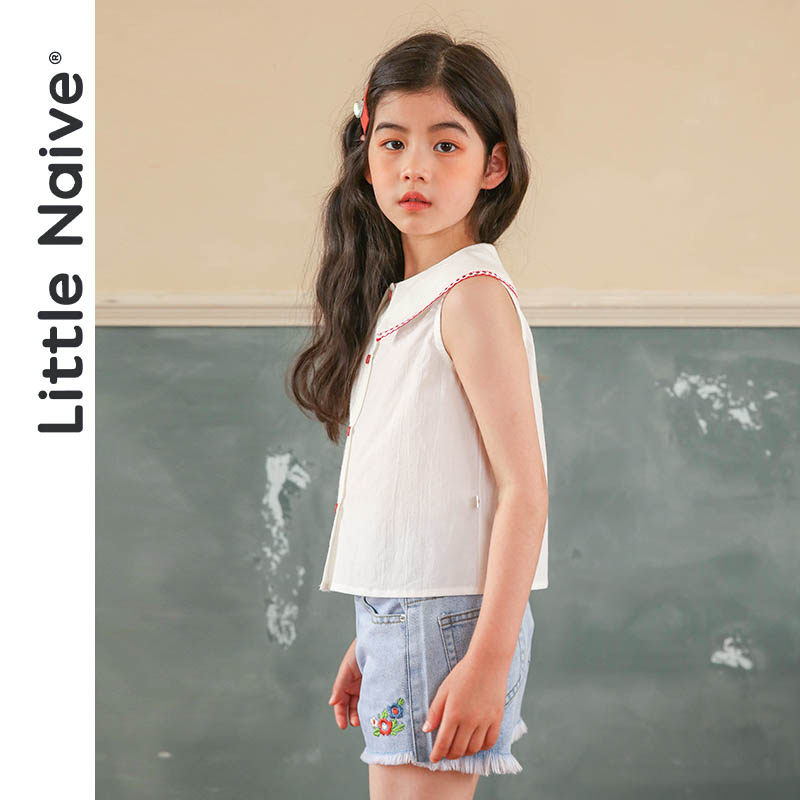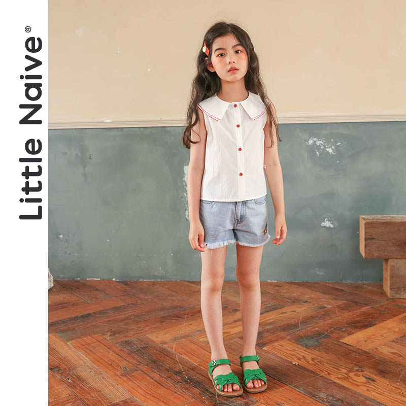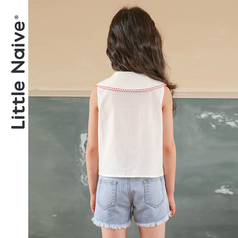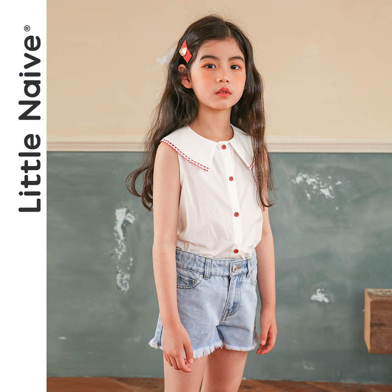 LittleNave Summer 2021 new girl lace collar sleeveless shirt slim fit children pure cotton shirt