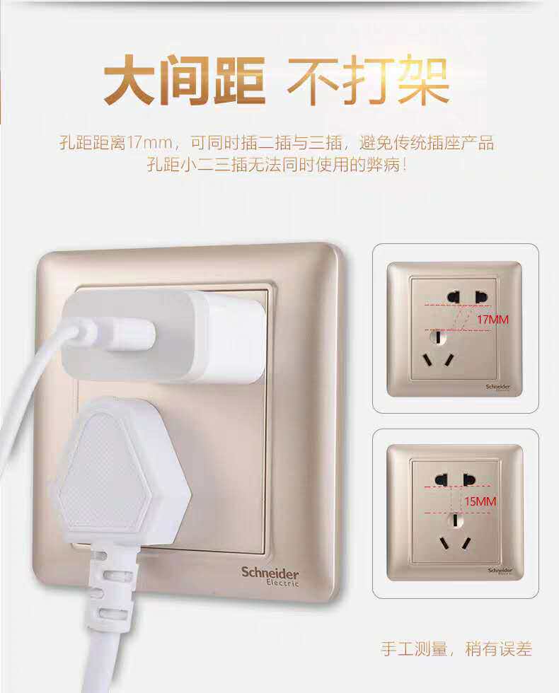 Schneider champagne gold switch socket panel porous 86 type concealed household wall misalignment oblique five holes Rui Yi gold