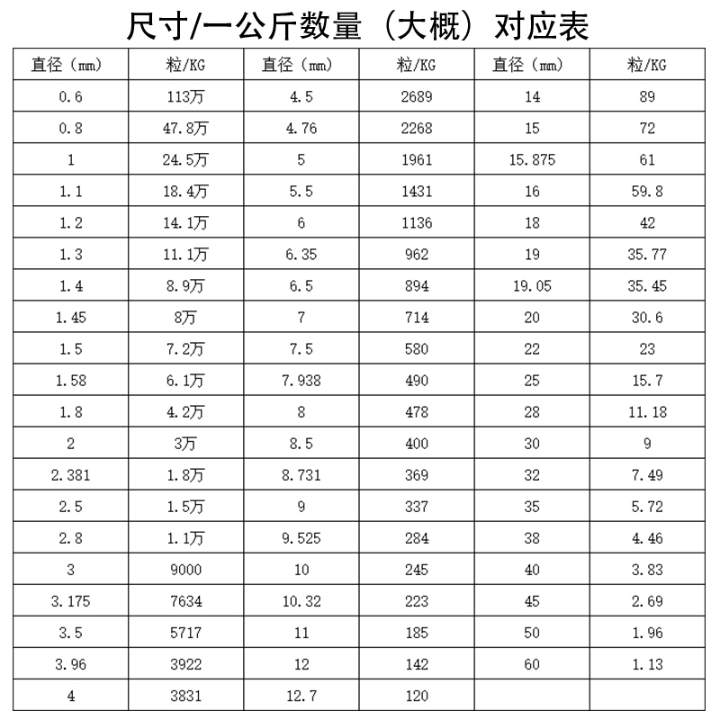 0 5mm-50mm Contact customer service 3969m m 1 kg 4 5mm 1 kg 4 76mm 1 kg 5mm 5 kg 5 5mm 6mm 1 kg