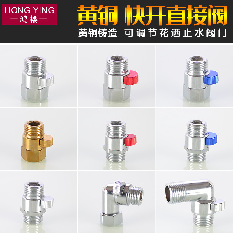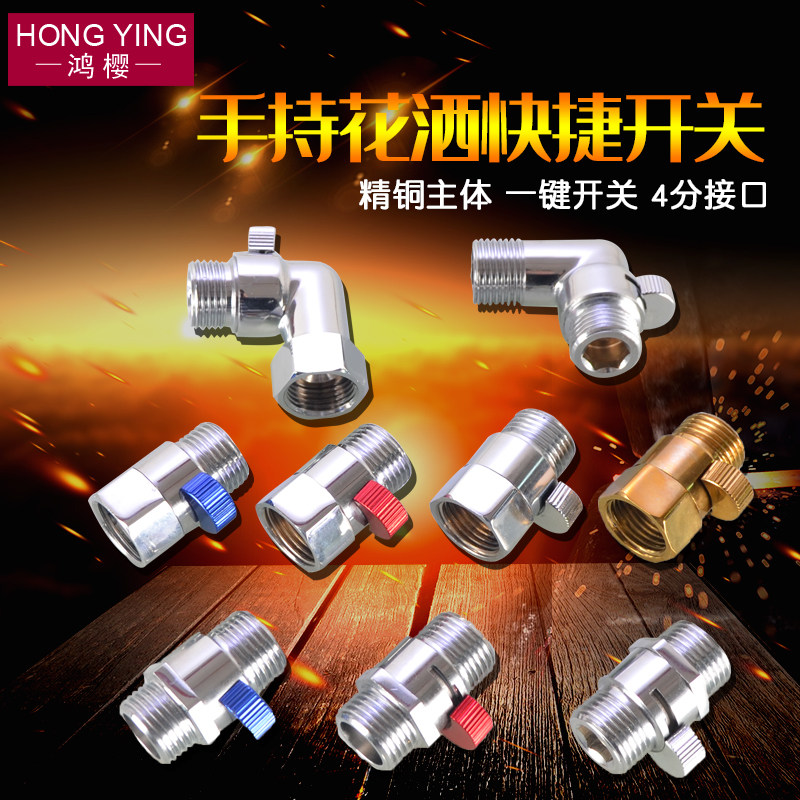 4 points all copper inner and outer wire double outer wire angle valve shower nozzle hose fast open straight through elbow with switch water stop valve