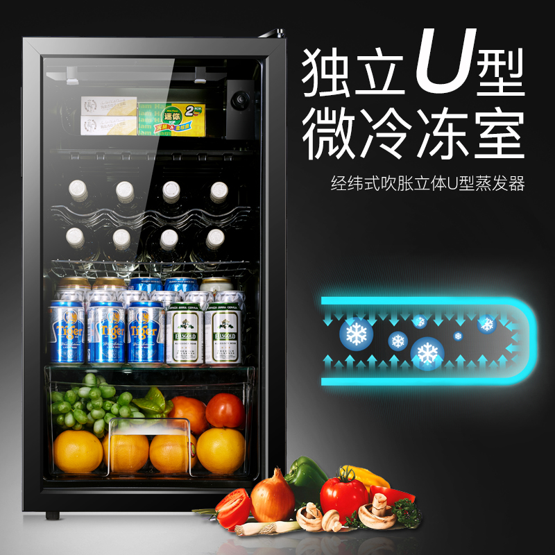 AUX 95L transparent glass single door ice bar household small refrigerator Tea refrigeration display sample preservation cabinet