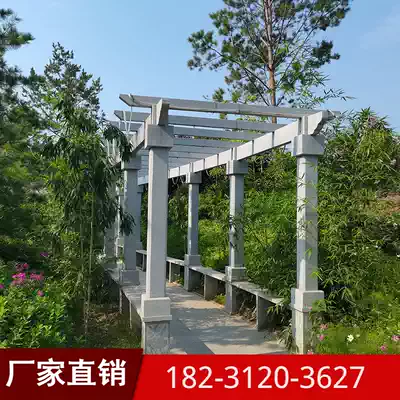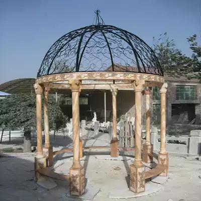 Door-to-door installation of marble stone pavilion corridor evening glow red European single-story Park outdoor hexagonal stone pavilion