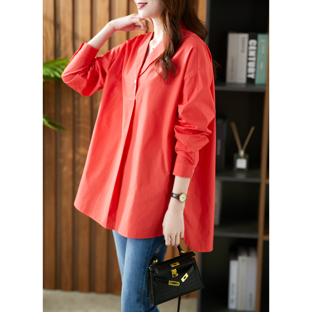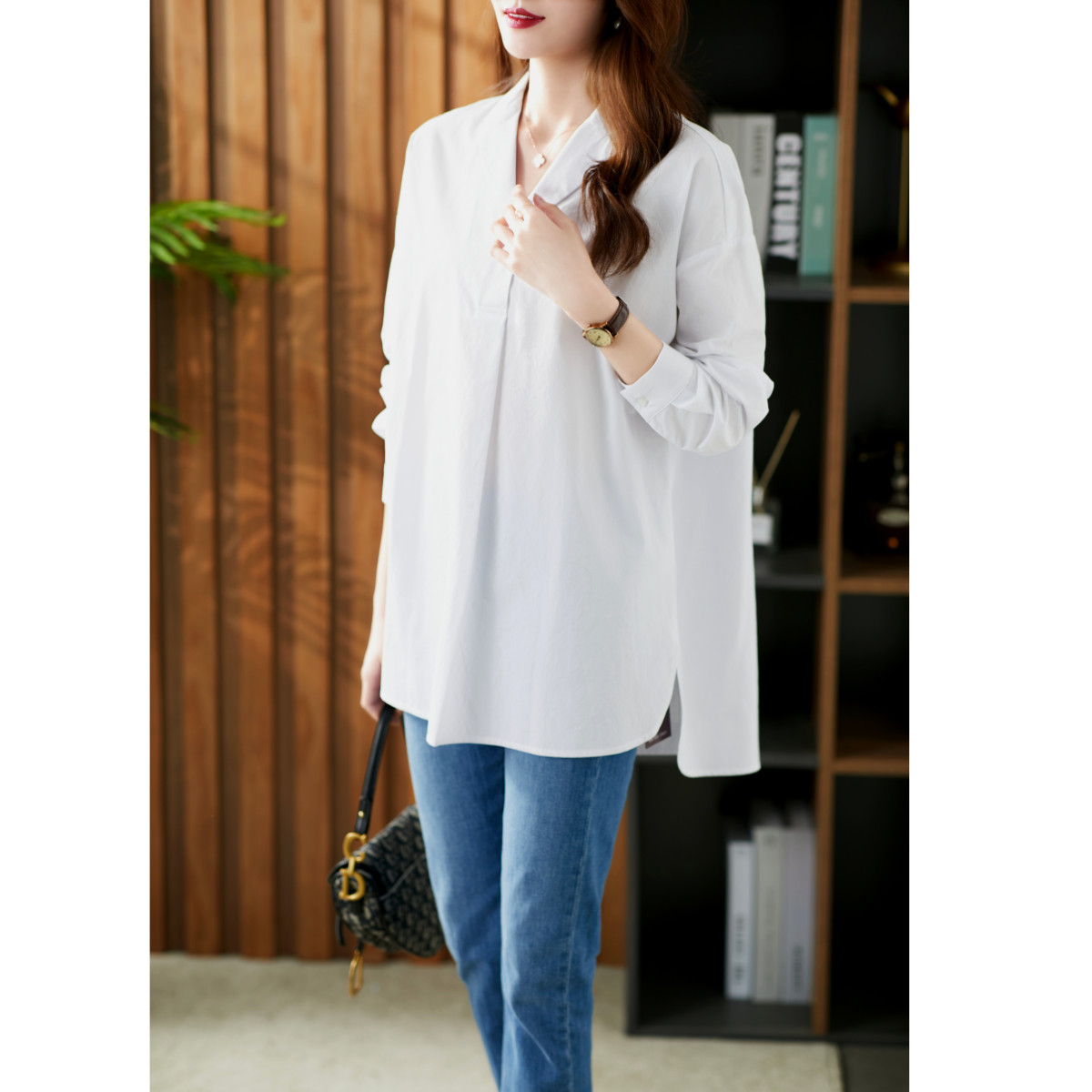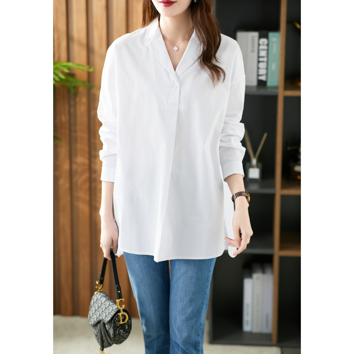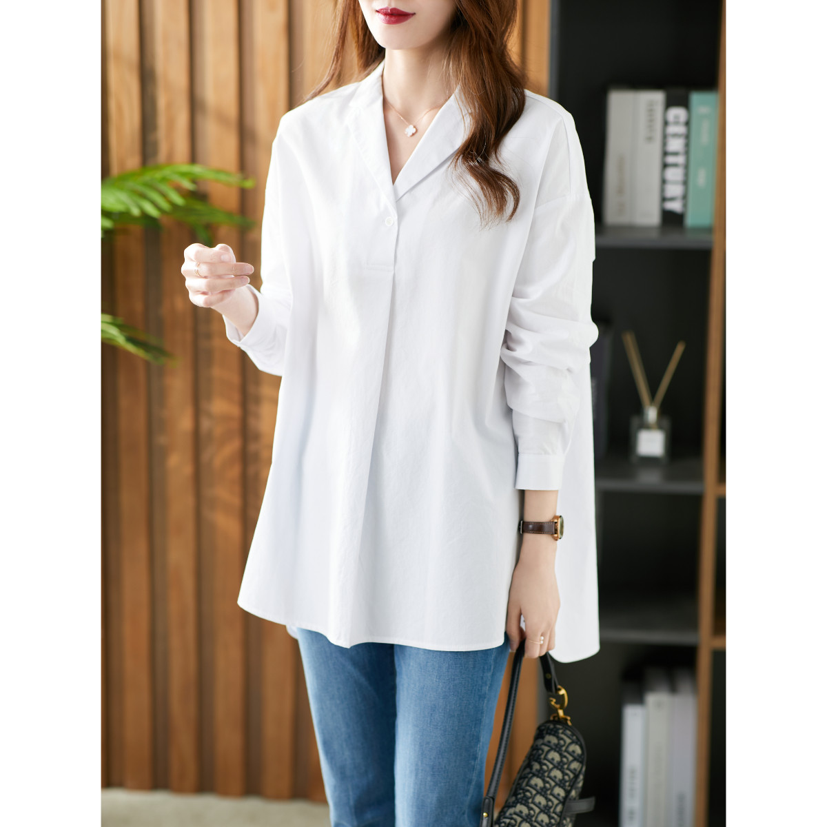 U Home Long version Hong Kong Wind shirt Female design sensation Little crowdsourced 2021 Fall new loose 100 Lapped Foreign blouses