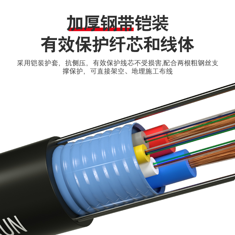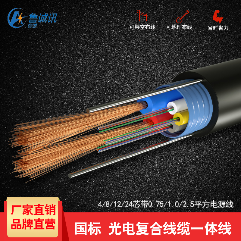 Single Mode Optical Cable Leather Line Optical Fiber Wire Jumper Live Source Wire Photoelectric Integrated Wire Composite Wire Armoured Outdoor 2 Core 4 Core