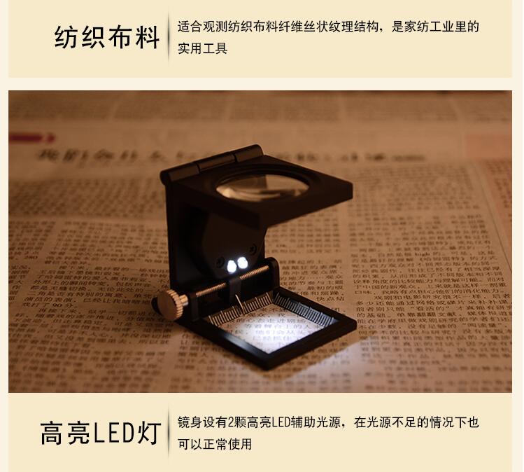 Three-fold magnifying glass cloth mirror 10X looking at pigeon eyes handheld portable jewelry magnifying glass with light LED