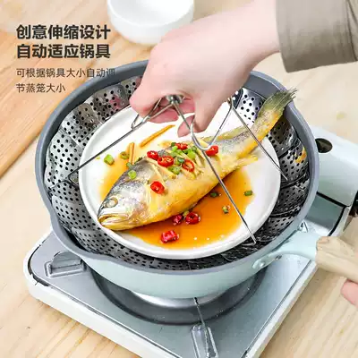 Kawashimaya stainless steel steamer Telescopic steamer Household water-proof folding steamer steamer grate steamer steamed bun steamer