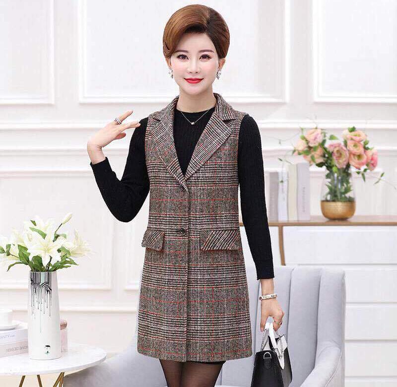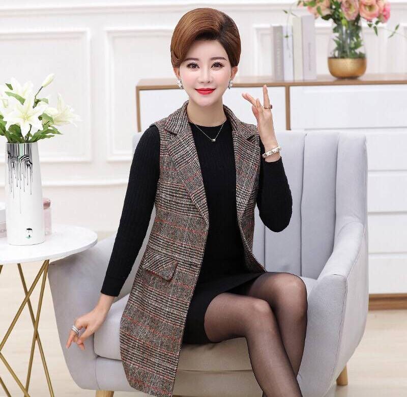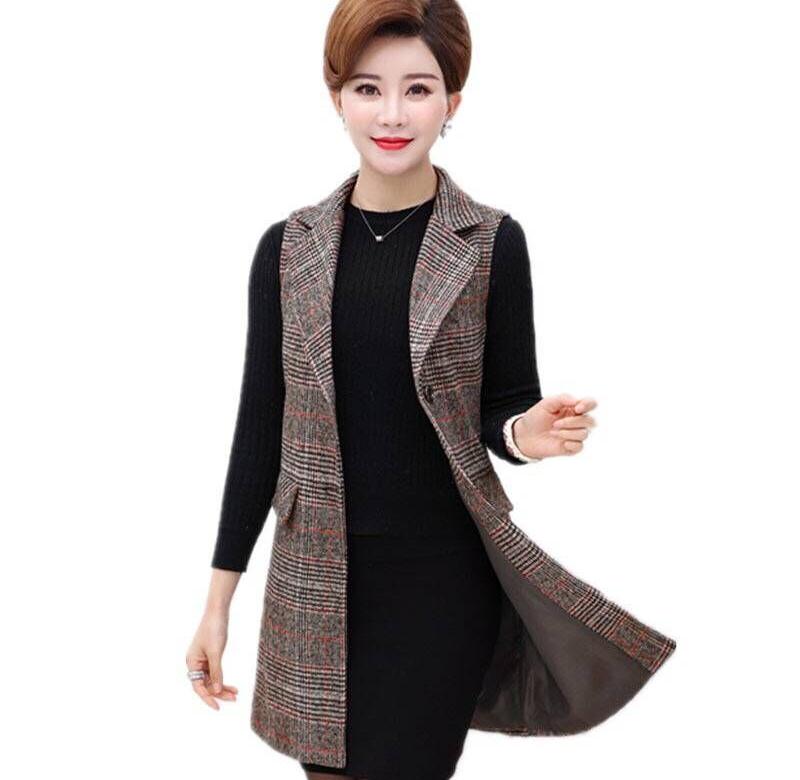Metropolitan Sexy Limen Waistcoat Jacket Lady Spring Autumn Clothing Moms Dress Plaid Sleeveless Vest Medium Long Version Big Size Women