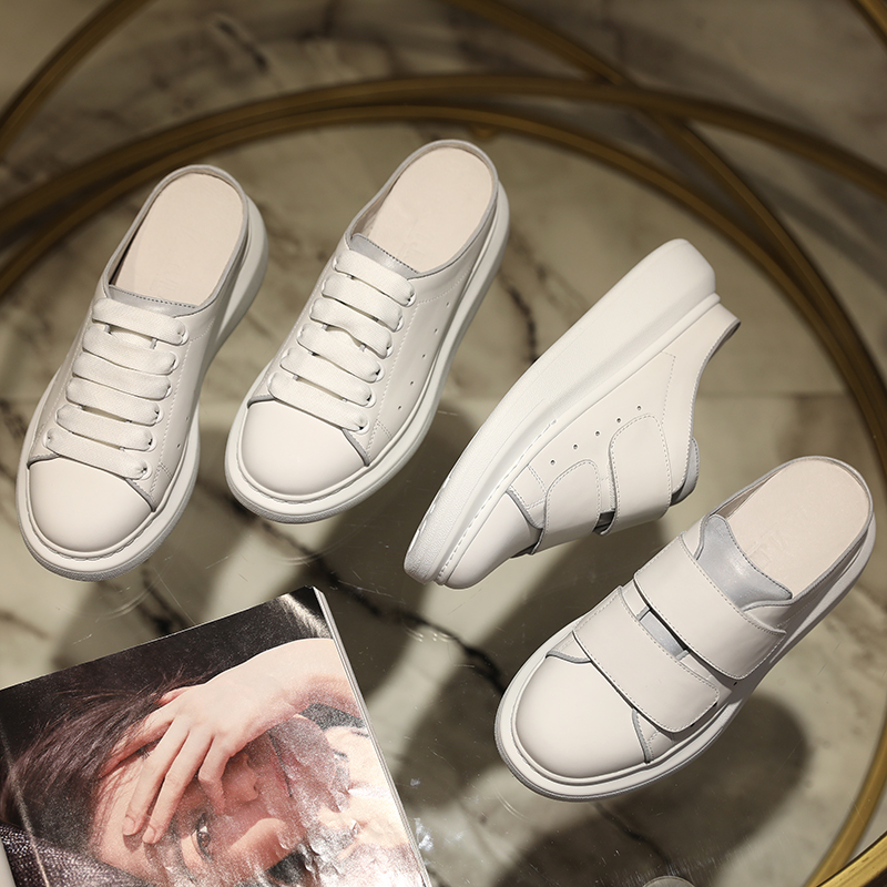Fashion Casual Genuine Leather Baotou Half Slippers Women 2022 Summer New Sloth inside heightening thick bottom small white shoes