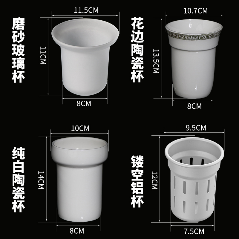 Frosted glass cup with hole frosted glass cup without hole lace ceramic cup pure white ceramic cup hollow aluminium cup integrated toilet circle base white brush head single white brush head two white brush heads three 25